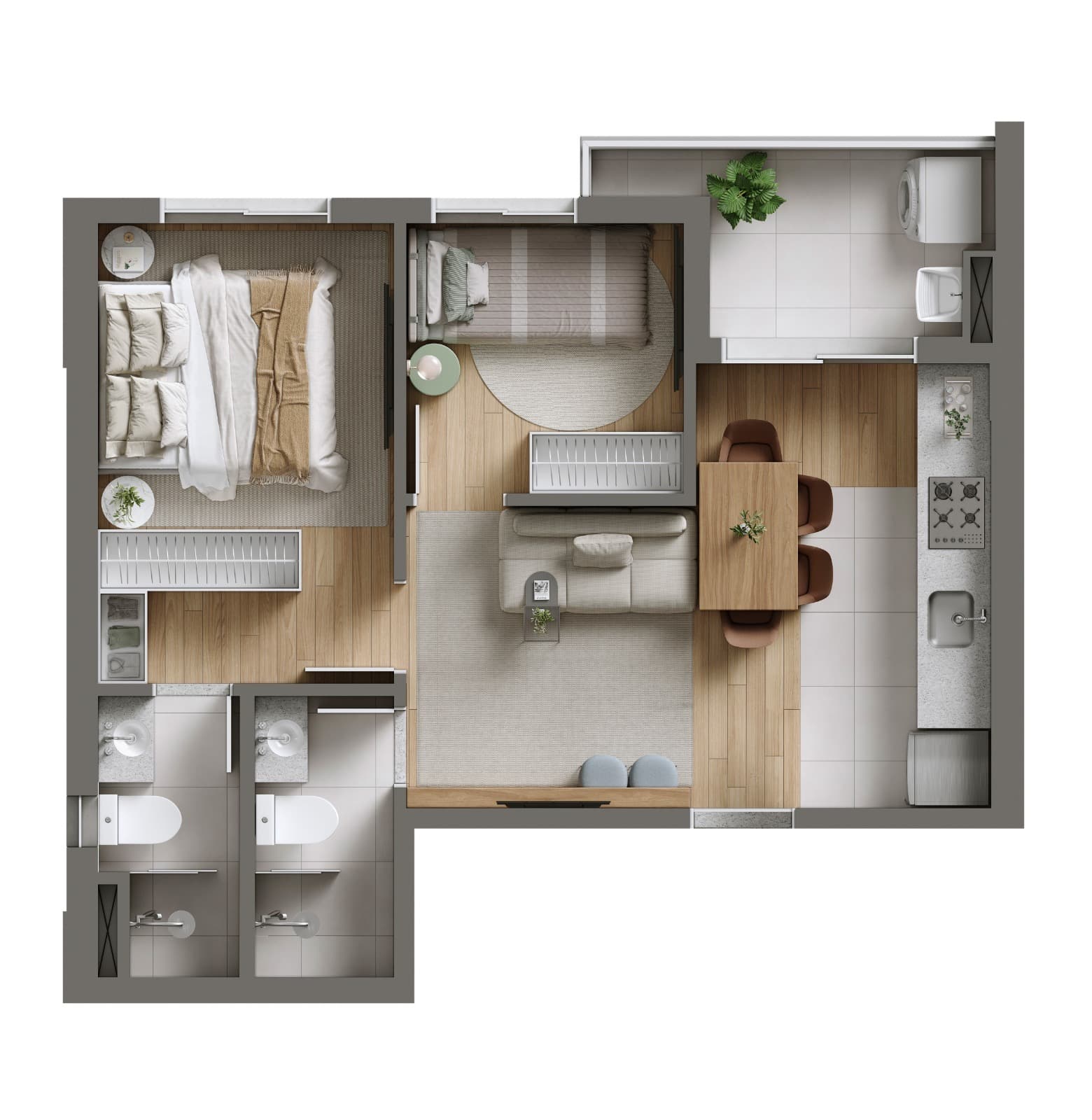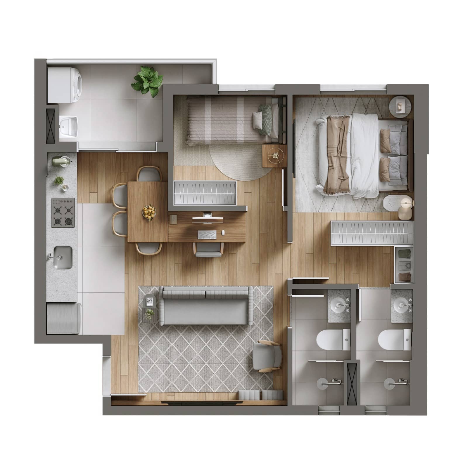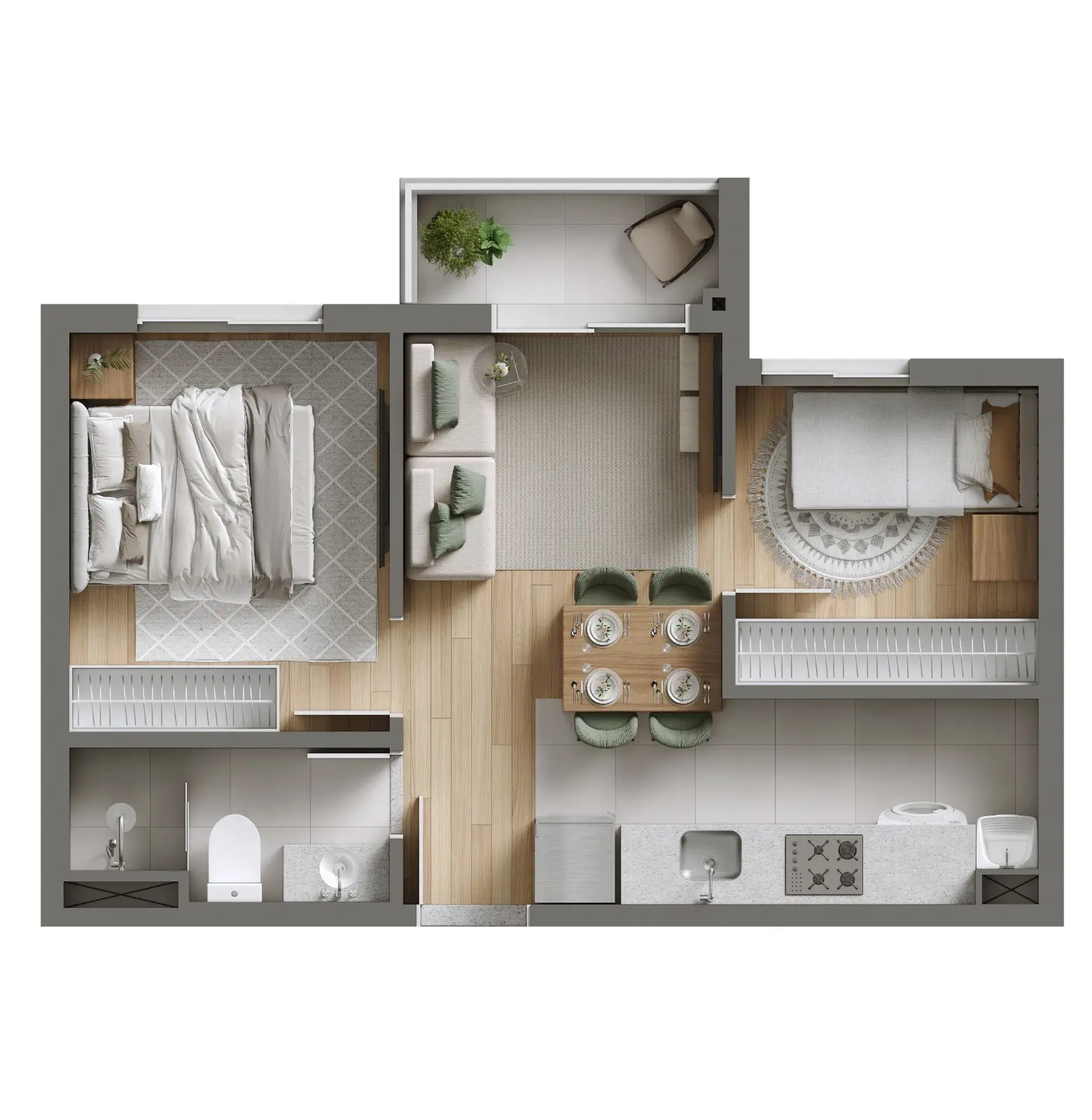 Com plantas inteligentes de 2 Quartos, o Sorano transforma suas áreas comuns em uma extensão da sua vida. Espaços Gourmet, Quadra e Pet Place garantem que você não precise sair para ter lazer completo.