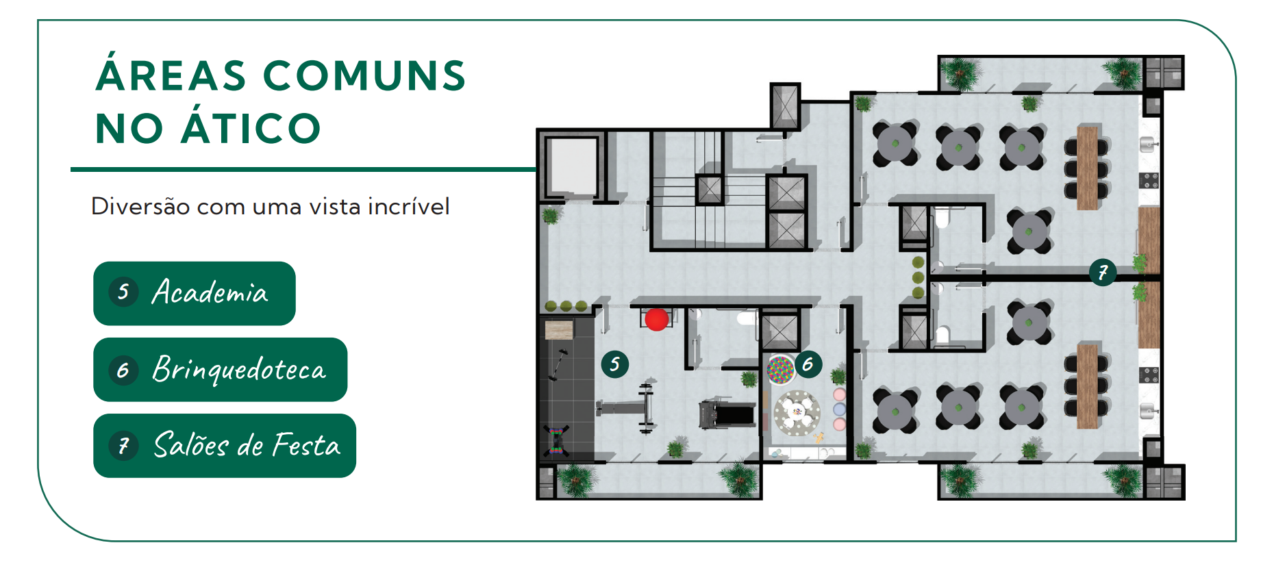 No Voltare, a sua rotina ganha um horizonte novo. Levamos a Academia, a Brinquedoteca e os Salões de Festas para o Rooftop, garantindo que seus treinos e celebrações tenham sempre uma vista incrível e livre como cenário.