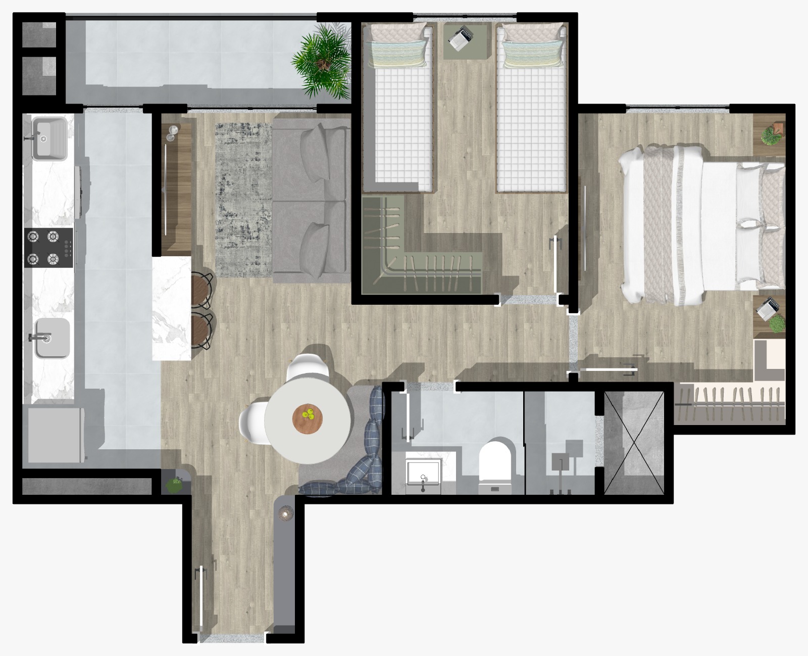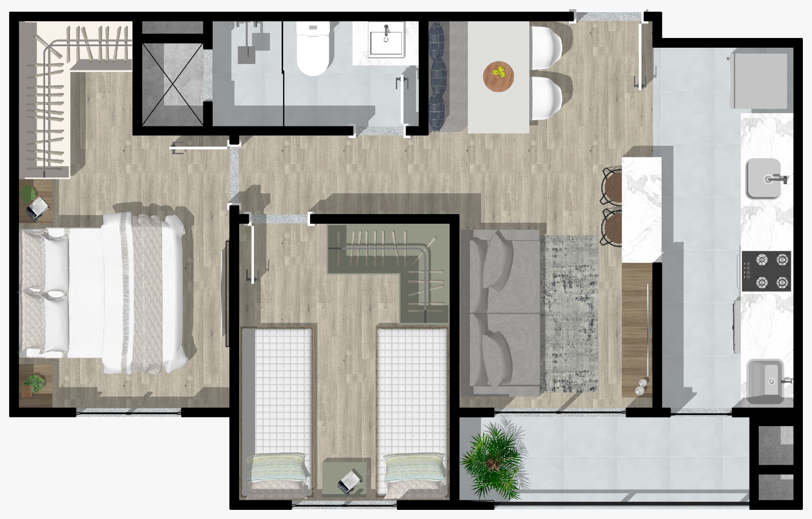 2 Quartos de 46m² a 55m²